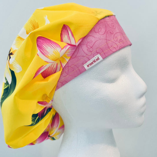Bouffant-Hawaiian yellow and pink flowers heic
