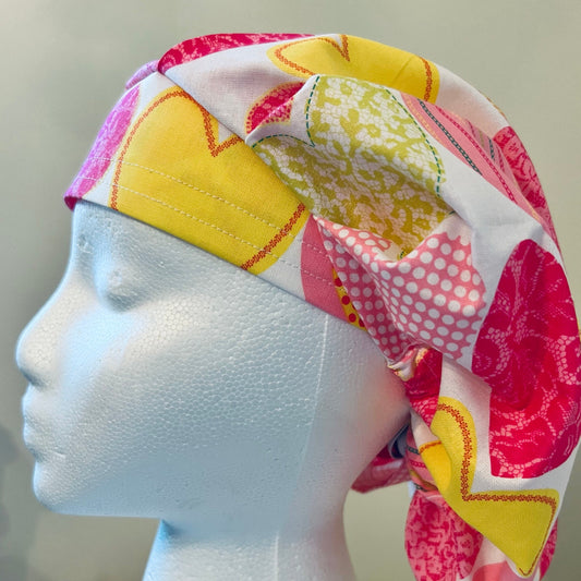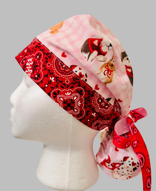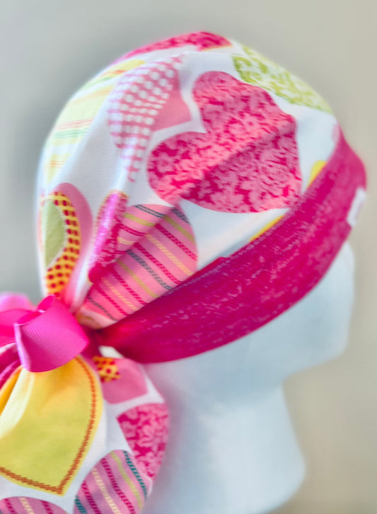 Ponytail Style hat-Valentines Day Hearts with pink ribbon