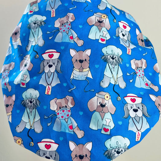 Bouffant-Dog Nurses with an aqua green contrasting band