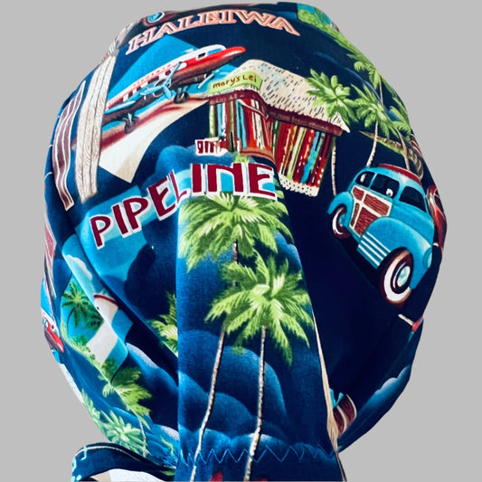 Bouffant Cap-Hawaiian Purple and White Blooms