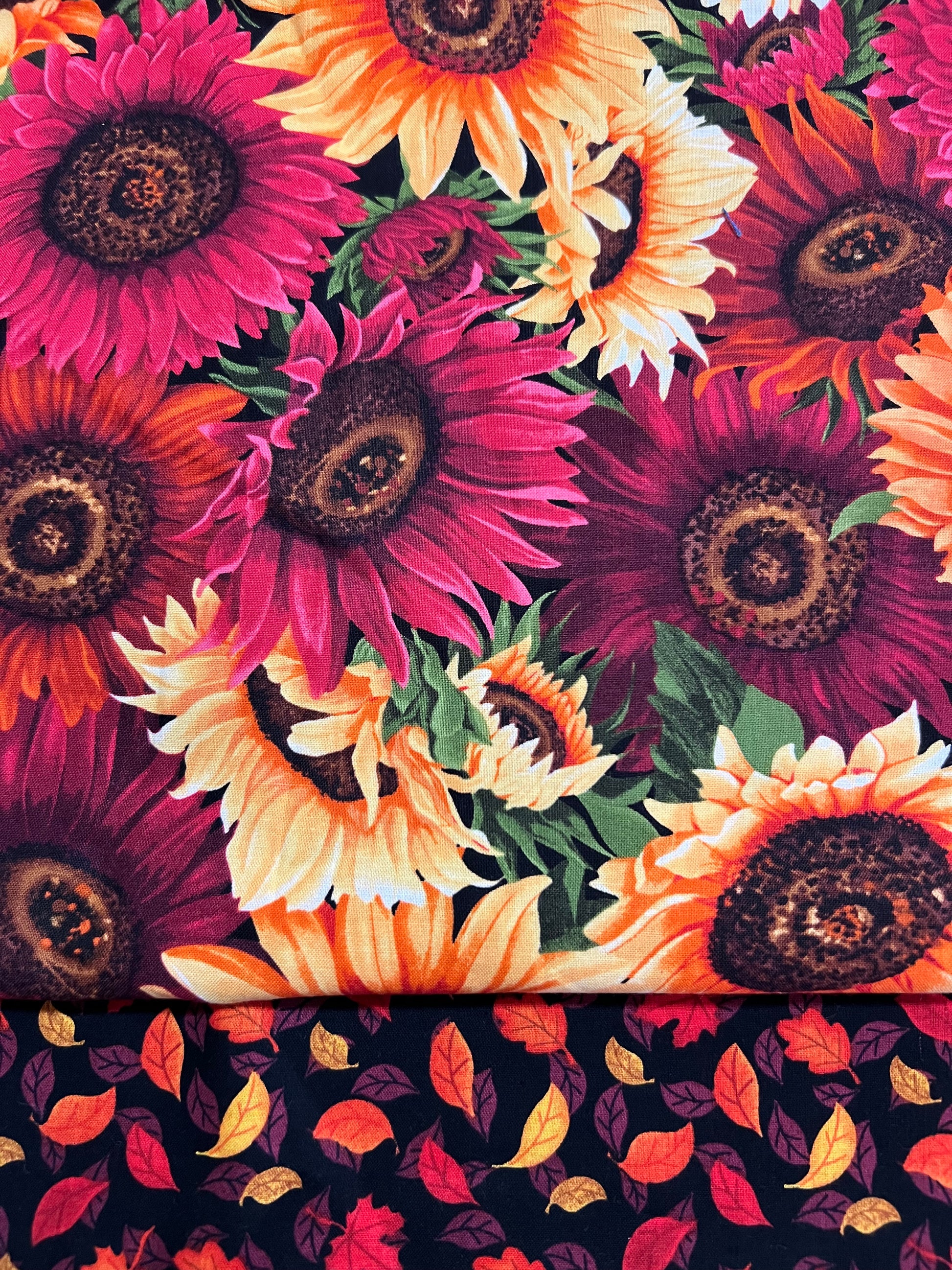 Elevate your surgical style with our stunning ponytail hat! Vibrant red and yellow sunflowers adorn the entire cap, bringing a touch of autumn charm to your attire. The coordinating front band, featuring pretty fall leaves, adds an extra seasonal flair. Complete with a yellow ribbon to secure your long hair, it's both stylish and functional for your workday needs.